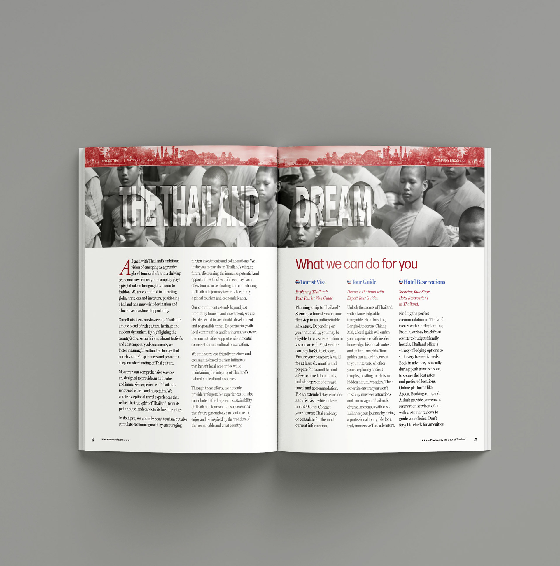 An 8-page travel brochure featuring an aesthetically pleasing layout enriched with visuals, employing investigative and analytical strategies, combined with innovative, thoughtful, and creative solutions.